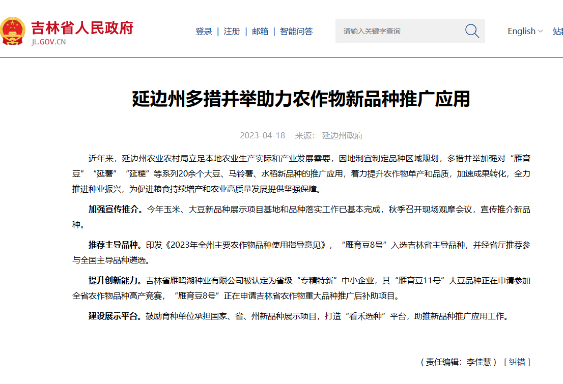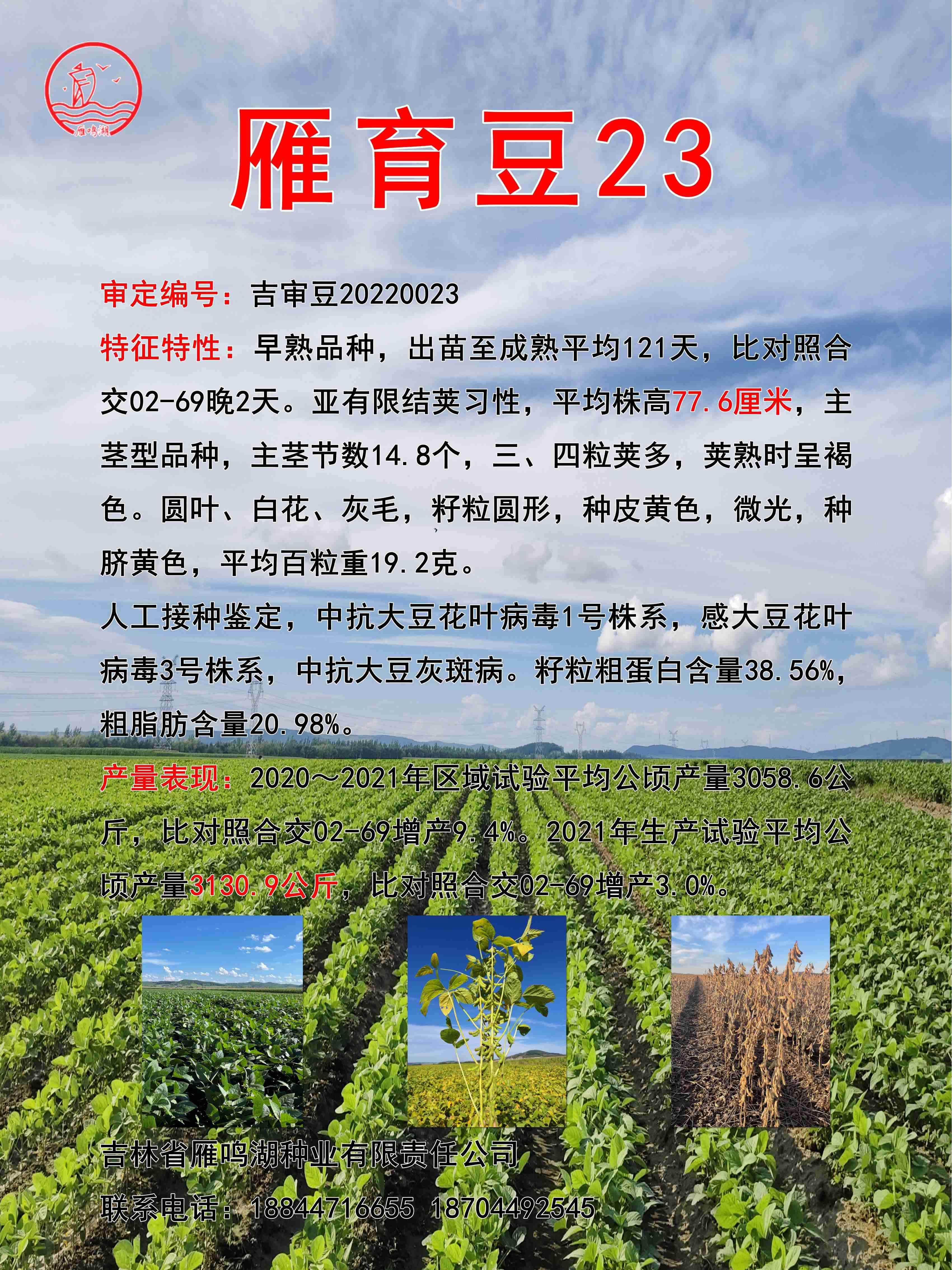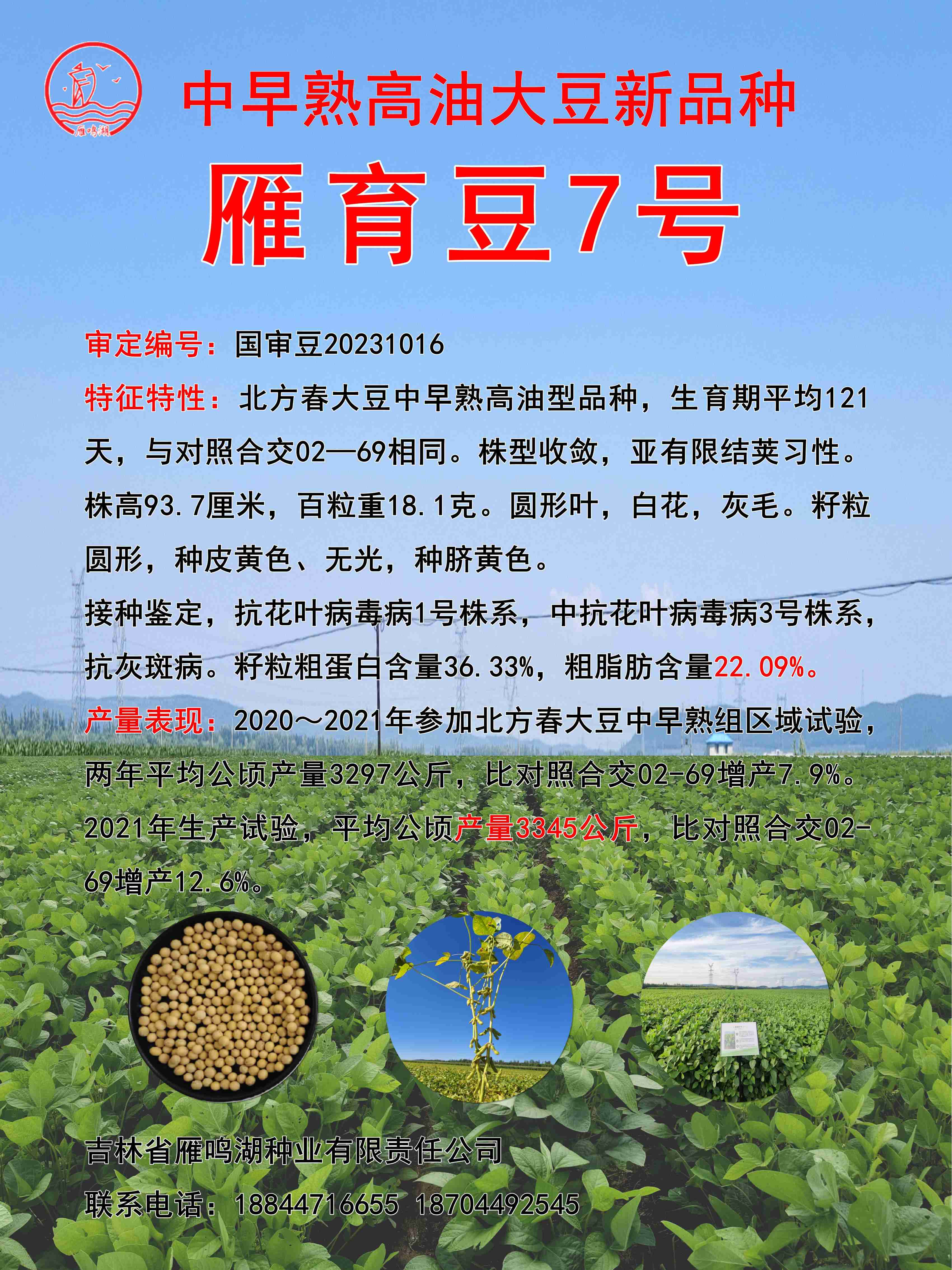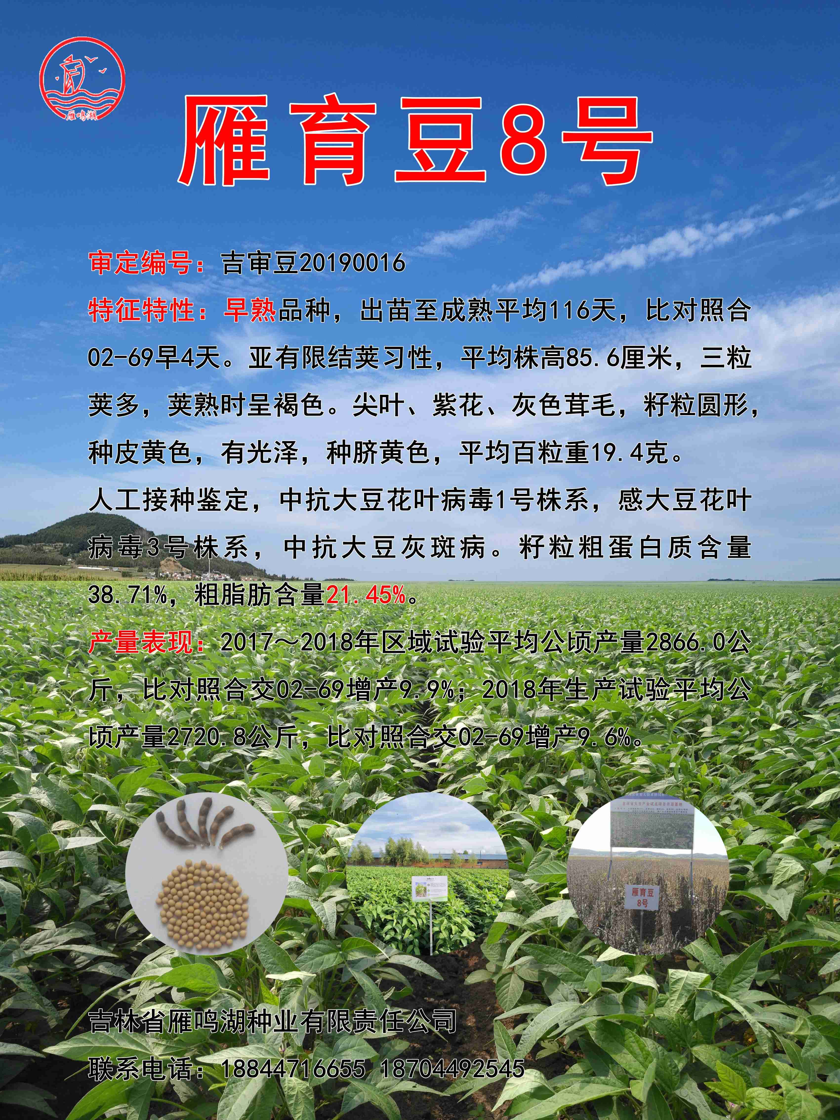 吉林省雁鳴湖種業(yè)有限責(zé)任公司成立于2006年6月,注冊(cè)資金3000萬(wàn)元,主要以生產(chǎn)玉米、大豆、脫毒馬鈴薯種薯為主。年生產(chǎn)大豆種子2000-2500噸,脫毒馬鈴薯種薯16000噸,玉米種子300噸,產(chǎn)品銷(xiāo)往重慶、四川、山東、東北三省等8個(gè)省份地區(qū),部分產(chǎn)品遠(yuǎn)銷(xiāo)朝鮮、俄羅斯等國(guó)家,實(shí)現(xiàn)年銷(xiāo)售收入2000-2600萬(wàn)元。公司現(xiàn)有職工31人,其中研究員4名,正高級(jí)農(nóng)技師4名,中級(jí)農(nóng)技師1名。2013被吉林省農(nóng)業(yè)委員會(huì)評(píng)為育、繁、推一體化企業(yè)。2019年8月被評(píng)為州級(jí)農(nóng)業(yè)產(chǎn)業(yè)化龍頭企業(yè)。